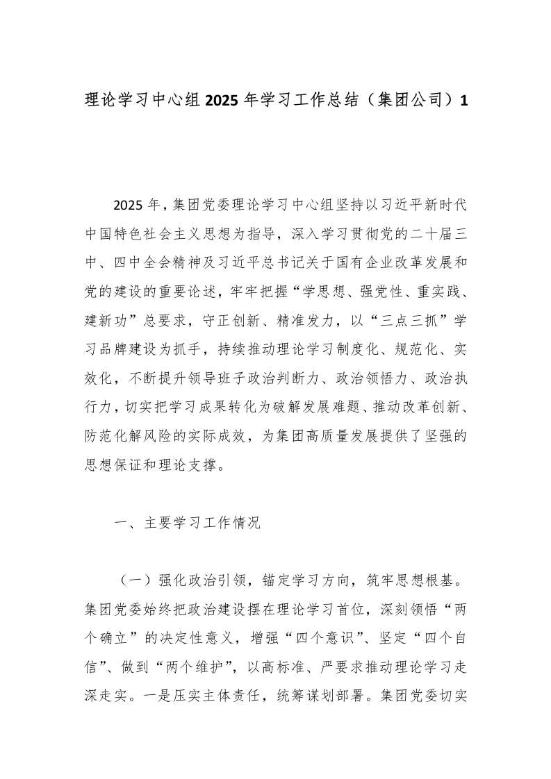 理论学习中心组2025年学习工作总结(集团公司)1