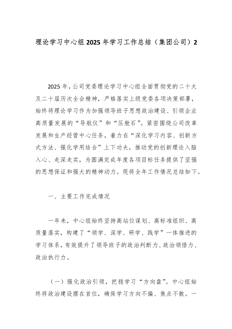 首页讲课讲稿理论学习中心组2025年学习工作总结(集团公司)2