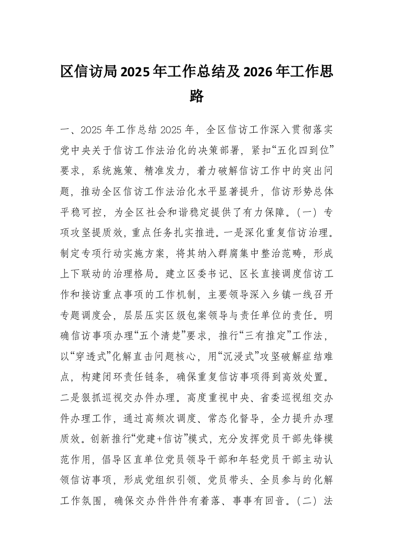 首页写作素材区信访局2025年工作总结及2026年工作思路