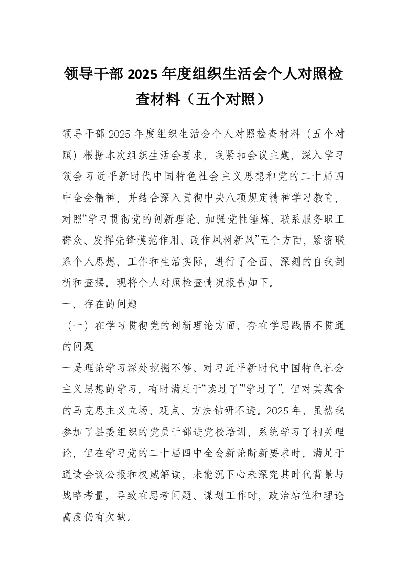 领导干部2025年度组织生活会个人对照检查材料(五个对照)