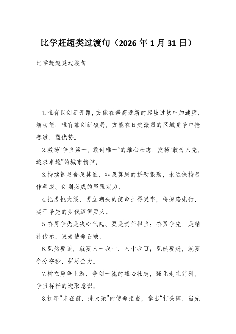 比学赶超类过渡句(2026年1月31日)