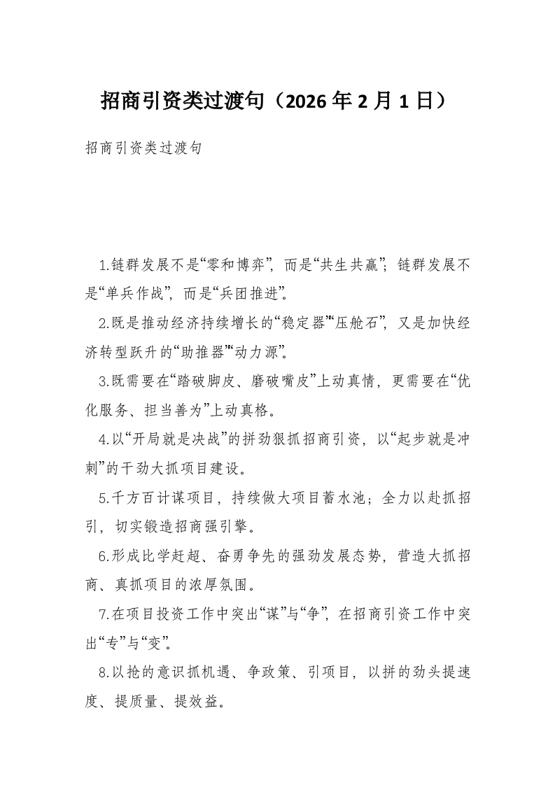 招商引资类过渡句(2026年2月1日)