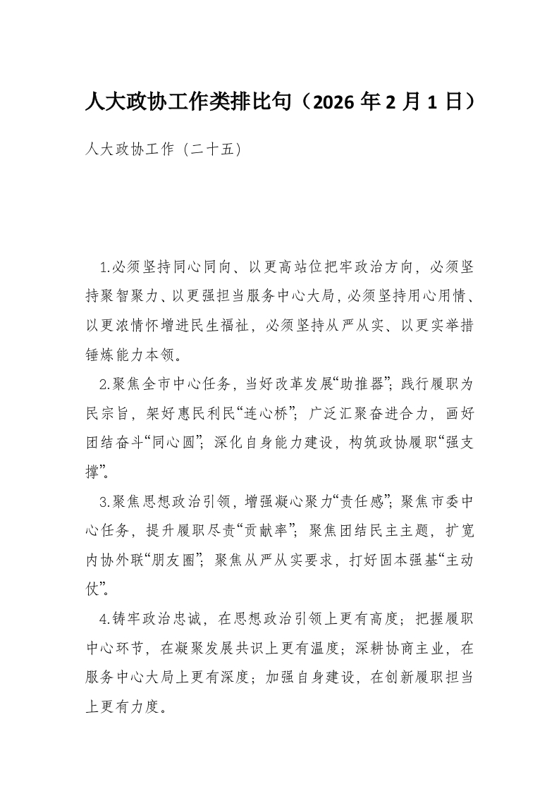 人大政协工作类排比句(2026年2月1日)