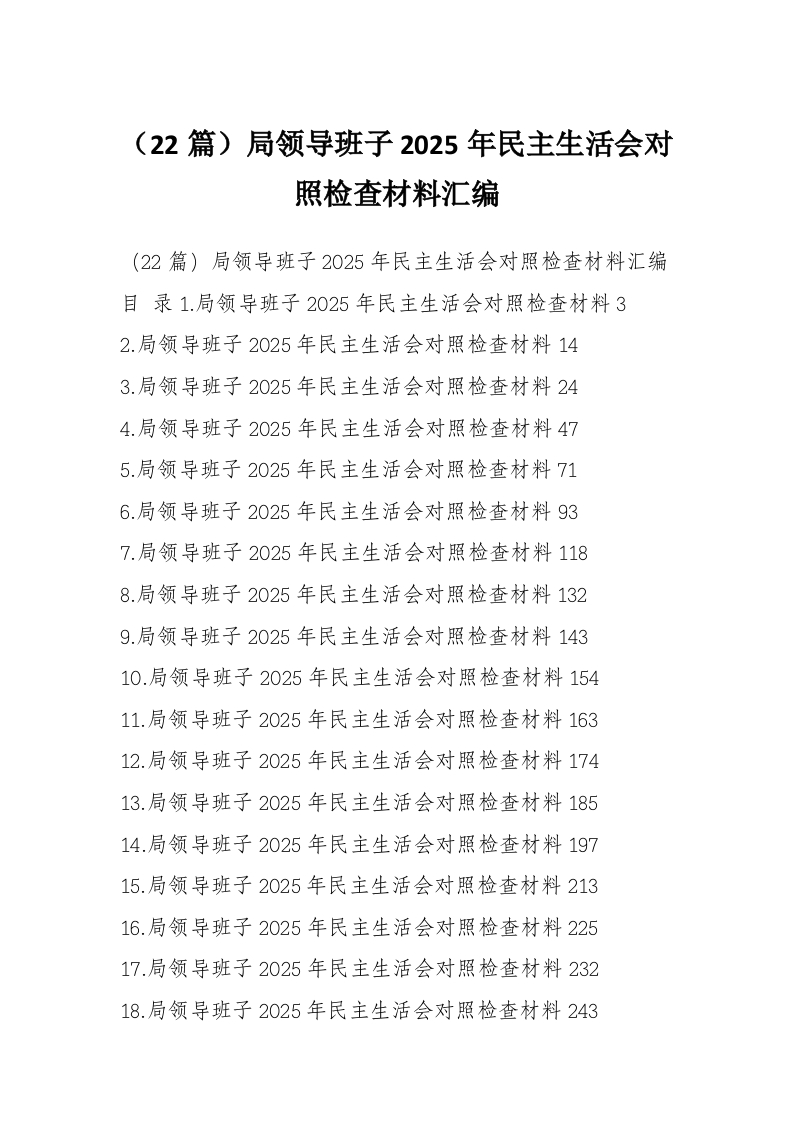 (22篇)局领导班子2025年民主生活会对照检查材料汇编