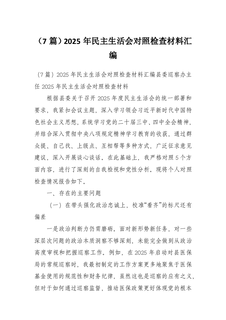 (7篇)2025年民主生活会对照检查材料汇编