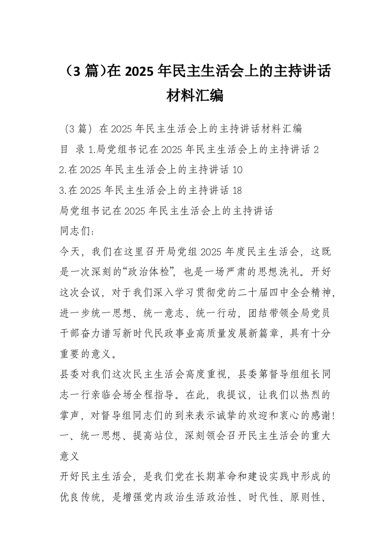 (3篇)在2025年民主生活会上的主持讲话材料汇编