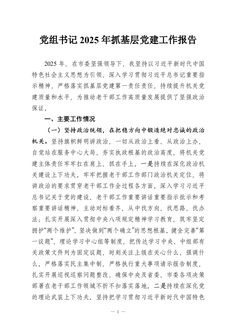 首页精选范文党组书记2025年抓基层党建工作报告