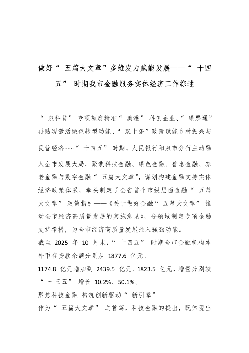 首页讲课讲稿做好“ 五篇大文章”多维发力赋能发展——“ 十四五” 时期我市金融服务实体经济工作综述