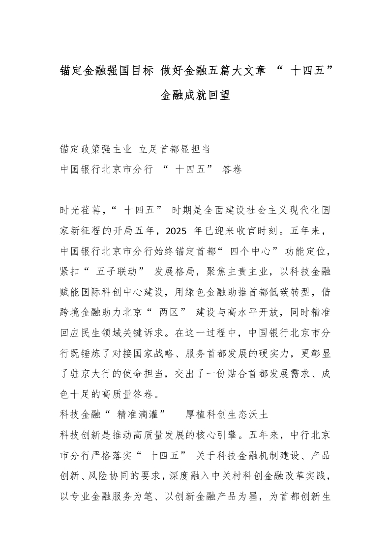锚定金融强国目标 做好金融五篇大文章 “ 十四五” 金融成就回望