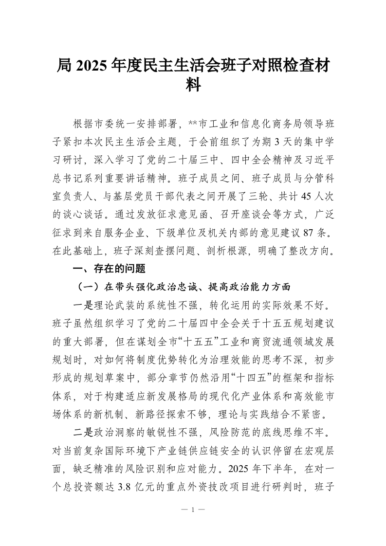 首页写作素材局2025年度民主生活会班子对照检查材料