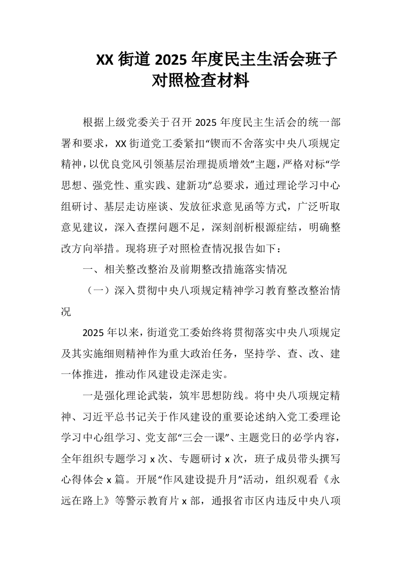首页材料汇编XX街道2025年度民主生活会班子对照检查材料