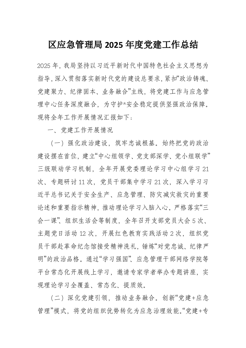 区应急管理局2025年度党建工作总结