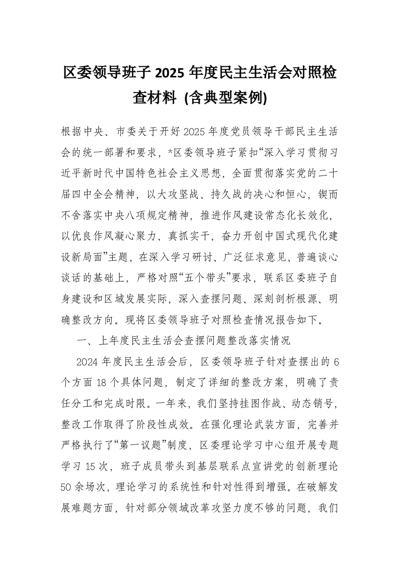 区委领导班子2025年度民主生活会对照检查材料 (含典型案例)