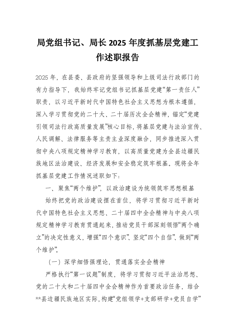 首页工作文档局党组书记、局长2025年度抓基层党建工作述职报告
