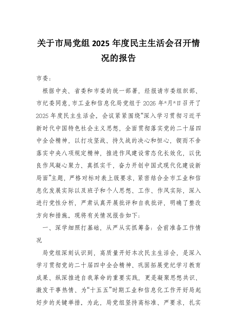 首页工作文档关于市局党组2025年度民主生活会召开情况的报告