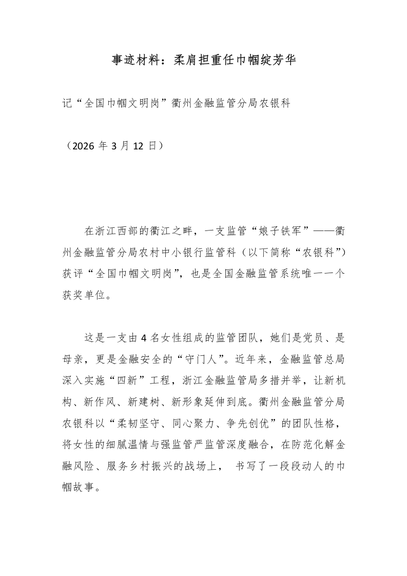 事迹材料:柔肩担重任巾帼绽芳华