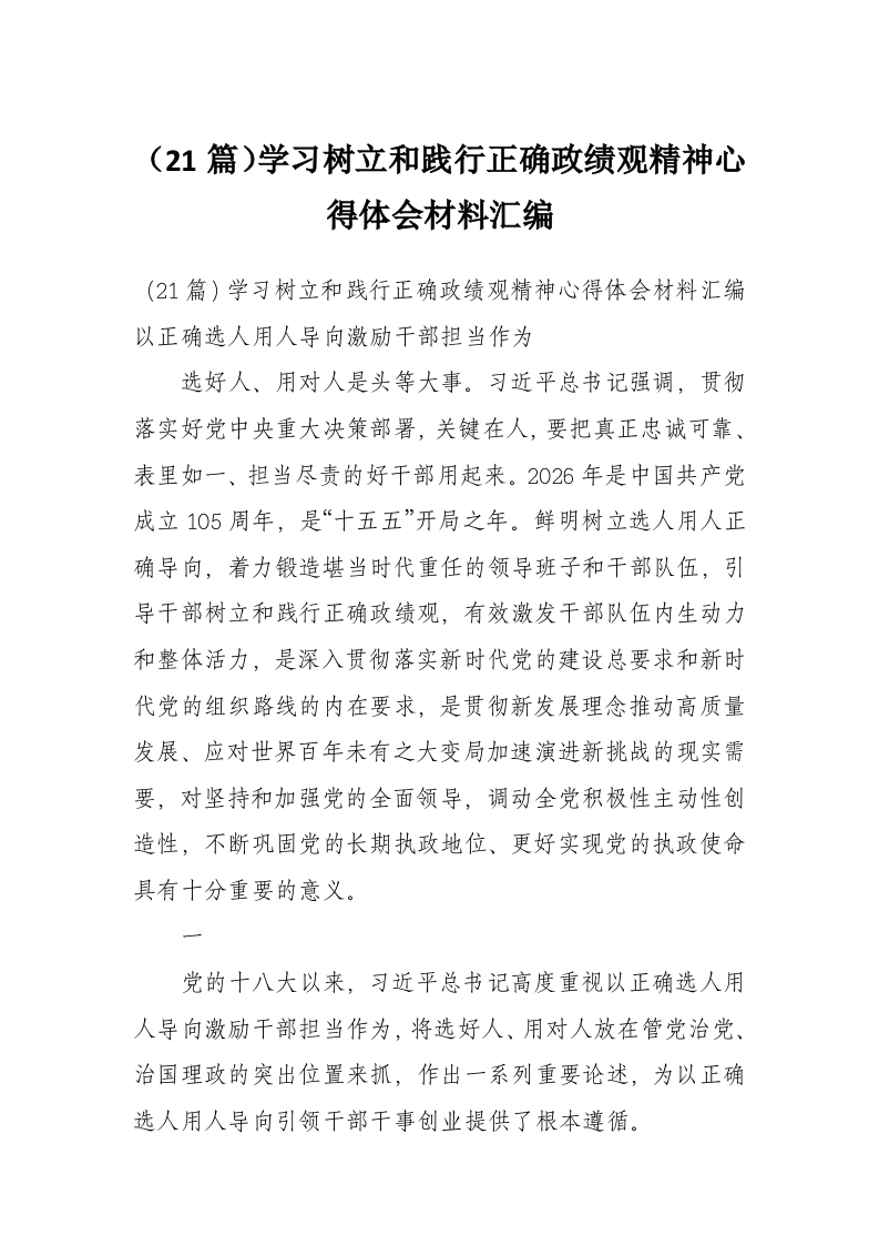 - (21篇)学习树立和践行正确政绩观精神心得体会材料汇编