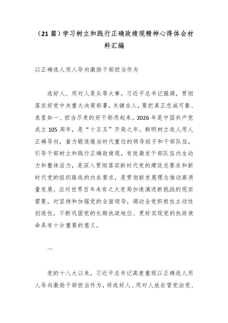 - (21篇)学习树立和践行正确政绩观精神心得体会材料汇编
